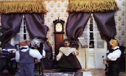 An other tableau for the Teddy Bear Museum in South Korea. This room box is an almost exact rendition of Albert Einstein`s apartment in Berne, Switzerland in 1905. I even went to the Einstein house in Berne in order to get all the details for this tableau. |