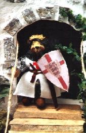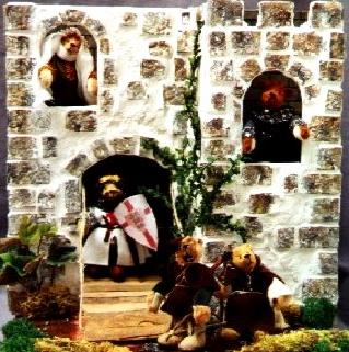 The castle is made of plywood The bricks are indiviually scultpted by hand and grouted with plaster. |
